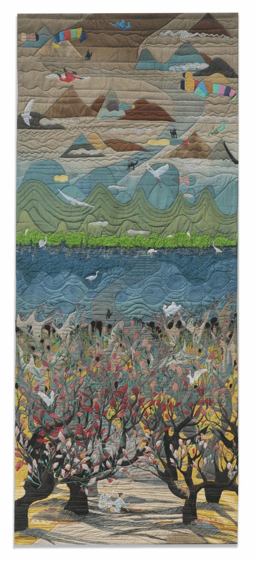 { 杜靓教授拼布艺术作品《丝路-漫游》178 X 79cm}