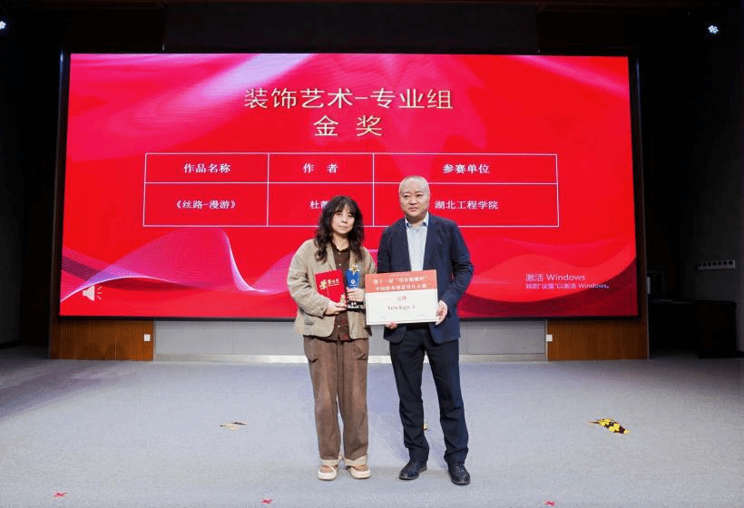 本网讯:近日,我校美术与设计学院杜靓教授创作的拼布艺术作品《丝路-漫游》获得由中国纺织服装教育学会主办的“第十一届中国拼布创意设计大赛”装饰艺术专业组金奖,颁奖典礼在柯桥美术馆举行。