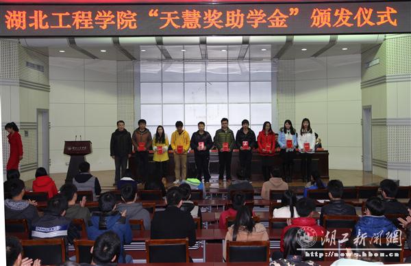 本网讯:12月30日,湖北工程学院“天慧奖助学金”颁发仪式在文学楼报告厅举行。学校副校长、校友会副会长、教育发展基金会副理事长丁远坤出席。校友办常务副主任、校友会秘书长来秀明主持大会。