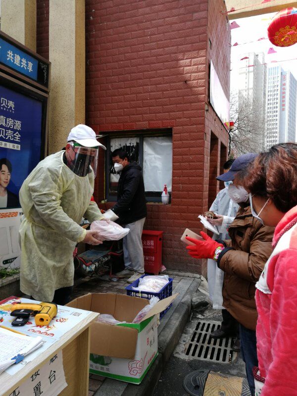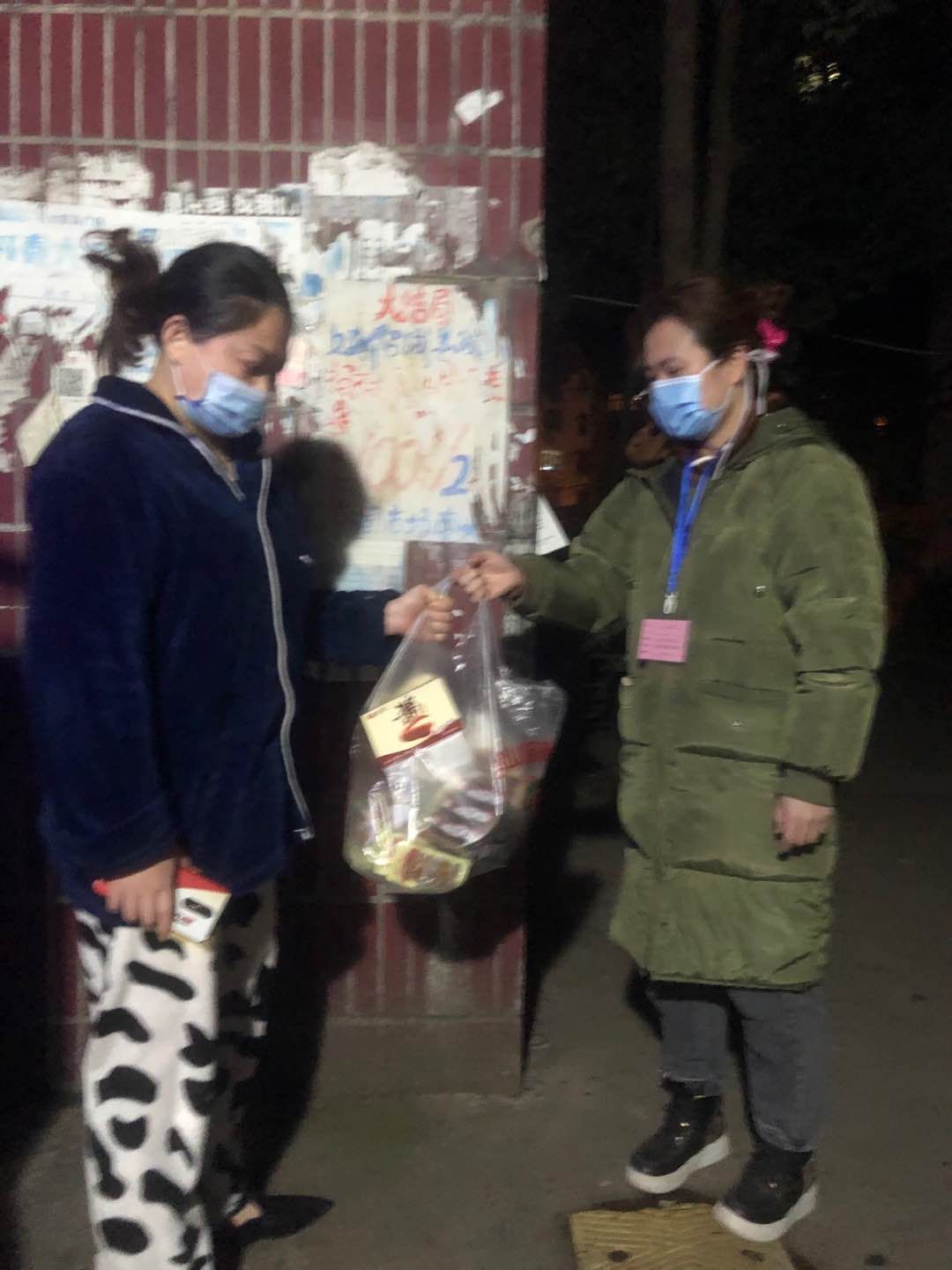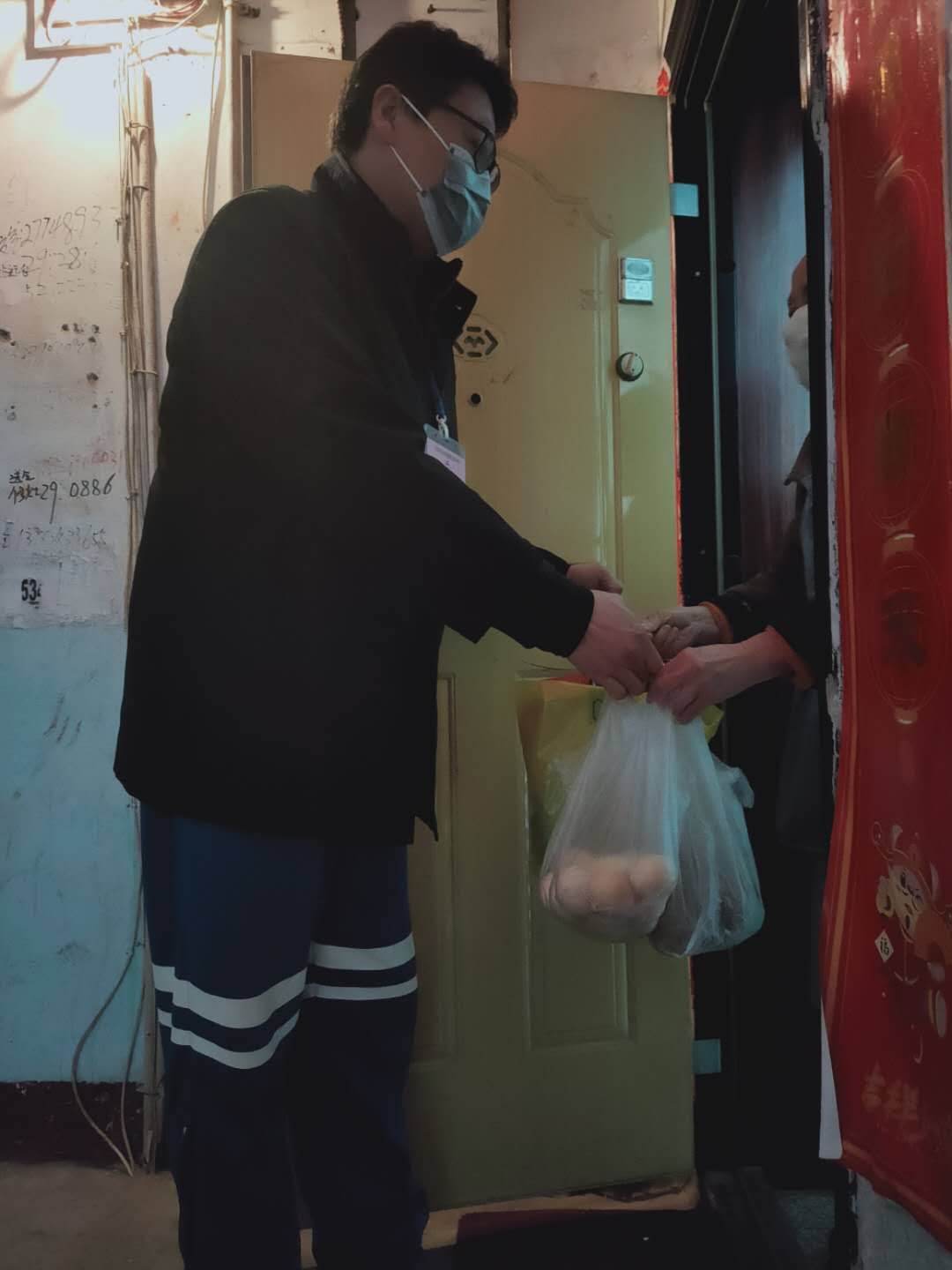 韩昌松老师身处在疫情重灾区武汉,他响应号召,不顾个人安危,从2月17日开始,主动下沉到汉阳区五麒里社区第五网格,负责雨林香居小区出入管理、体温排查、采买药品和生活物资等工作,下沉社区后一天未休息。“帮居民采买药品时,经常要跑十几个药店,还不一定能买齐。特别是为重症慢性病患者去指定药店买药,经常要排队四五个小时以上。” 韩昌松老师每天还要定时为居民采买国家保障爱心菜,对小区内低保户、孕妇、七十岁以上高龄住户都是送菜上门。每一次物资发放都需要几个小时,经常忙得连吃饭的时间都没有。