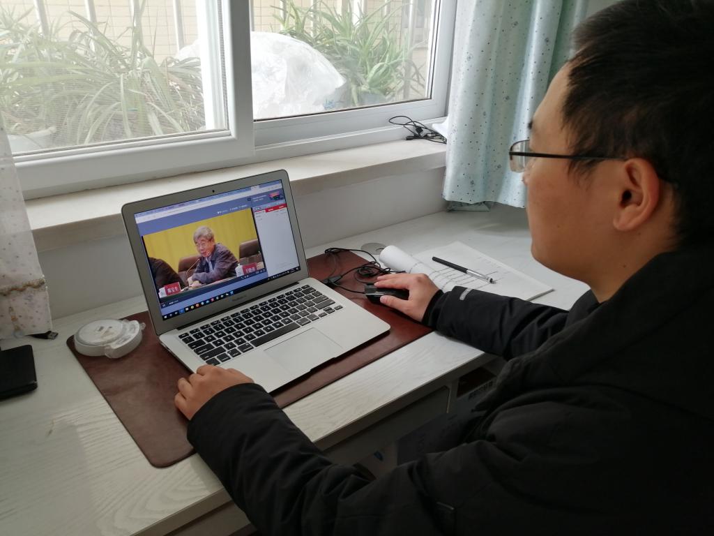 学生工作部(处)工作人员 胡明亮 观看学习视频