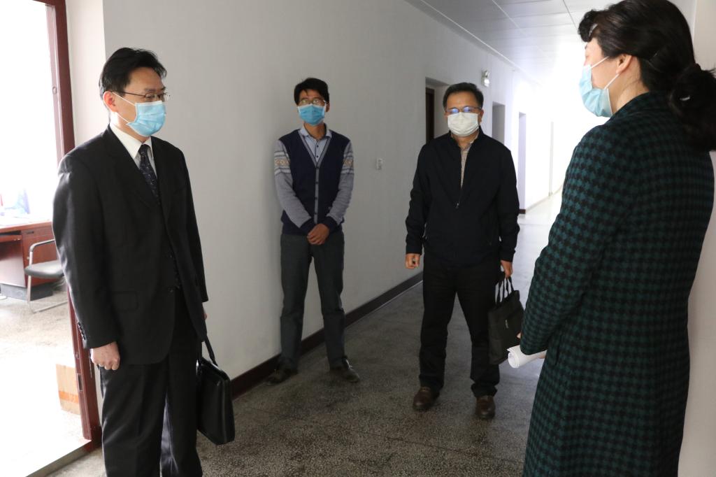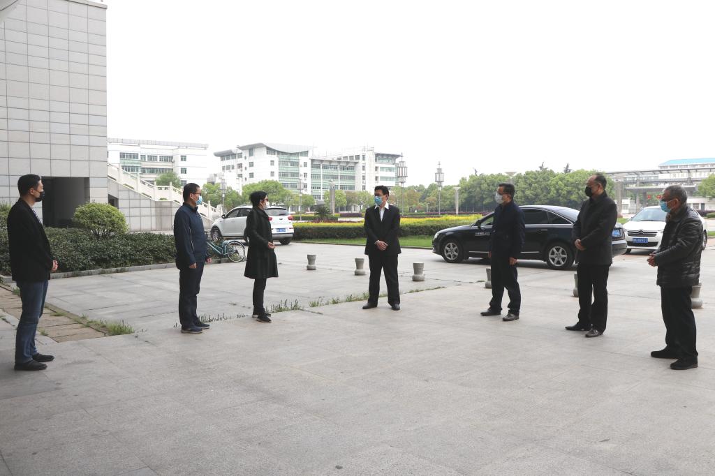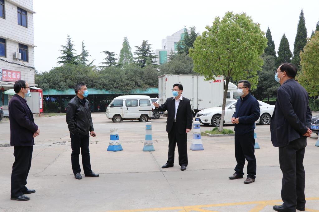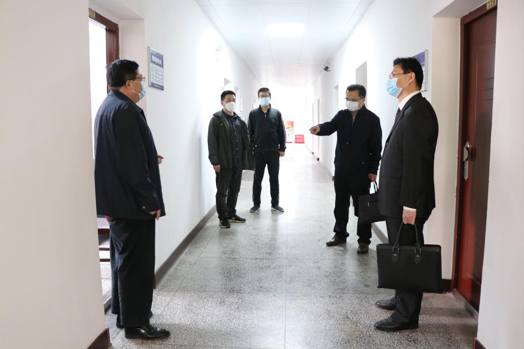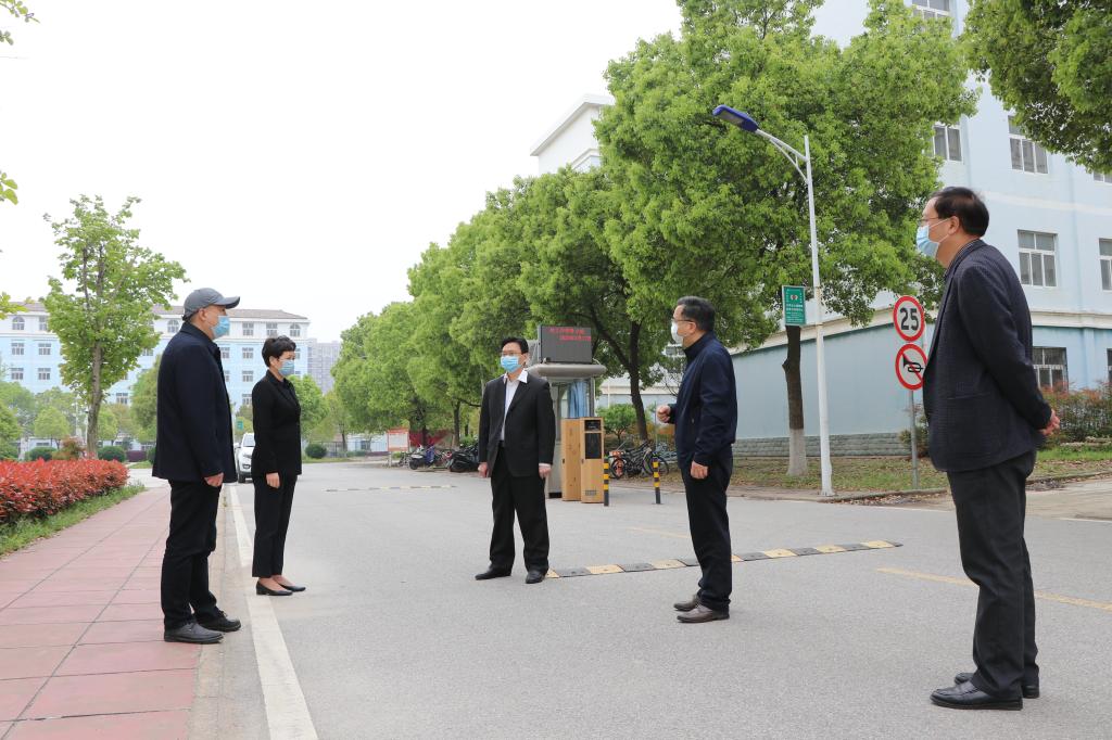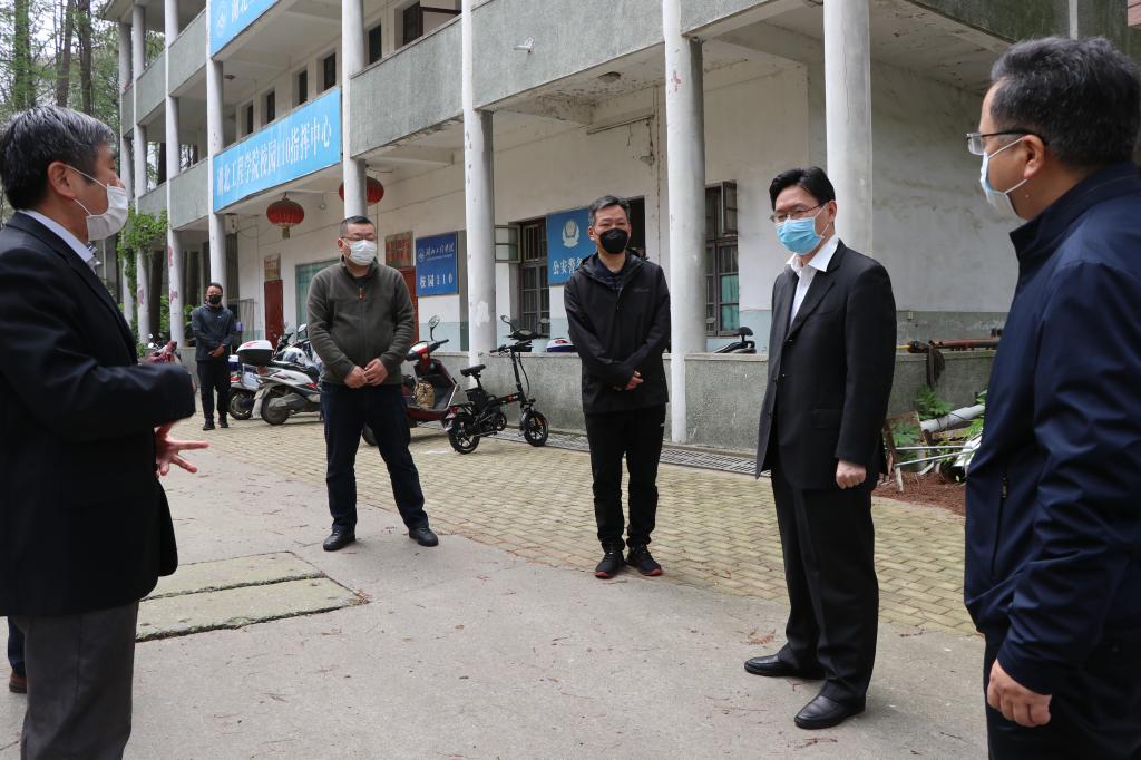 本网讯:4月10日上午,学校一届六次教代会刚结束,校党委书记彭瑜、校长潘慧明就轻车简从,先后到人事处、教务处、招生就业工作处、保卫处、后勤保障办公室、实训中心建设工地、化学与材料科学学院和新技术学院等地,走访慰问坚守岗位的干部职工,对大家的无私奉献与辛勤付出表示感谢。同时,就疫情期间的人才引进与教职工福利待遇、线上教学、毕业生就业、校园安全、防疫物资、项目建设、科研等工作,彭瑜、潘慧明叮嘱相关单位负责人,在做好疫情防控的同时,要按照教代会确定的目标、任务和要求,守土尽责,扎实工作,确保学校各项事业健康有序推进。