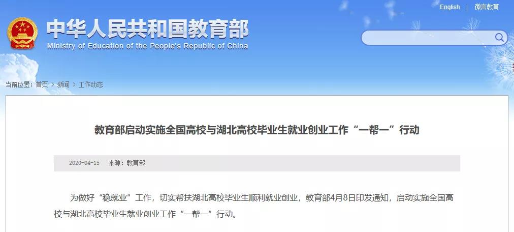 为做好“稳就业”工作,切实帮扶湖北高校毕业生顺利就业创业,教育部4月8日印发通知,启动实施全国高校与湖北高校毕业生就业创业工作“一帮一”行动。其中,天津大学将与湖北工程学院结对。4月13日,双方已携手天津市滨海新区人社局开展“天津大学&湖北工程学院联合空中双选会——湖北籍学生专场”招聘活动。
