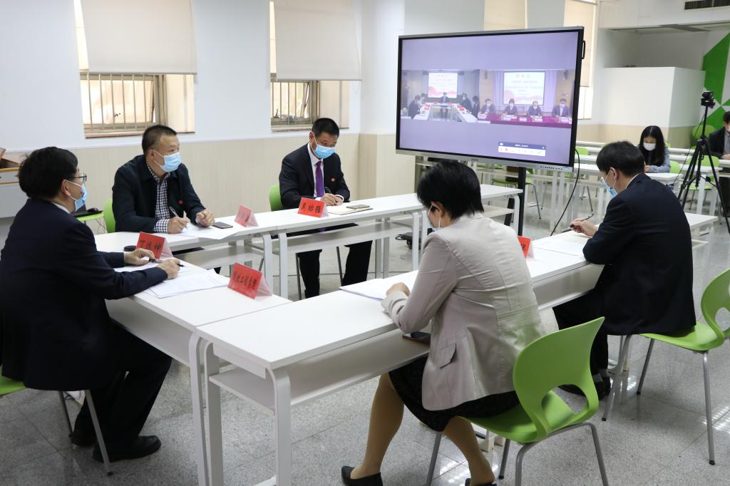 签约仪式前,到我校检查指导疫情防控工作的湖北省副省长肖菊华、省政府副秘书长卢军、省教育厅副厅长黎虹、孝感市政府副市长吴婕,在校党委书记彭瑜、校长潘慧明、校党委副书记汪达的陪同下,亲切看望两校与会人员,并通过视频连线的方式与天津大学与会人员进行了亲切交流。