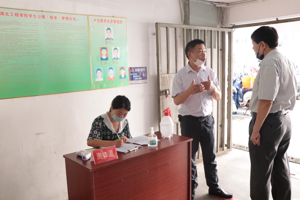 本网讯:8月27日,省教育厅秋季开学督查组一行到我校督查疫情防控和秋季开学准备工作,校长潘慧明、党委副书记汪达及新技术学院负责人等参加检查。