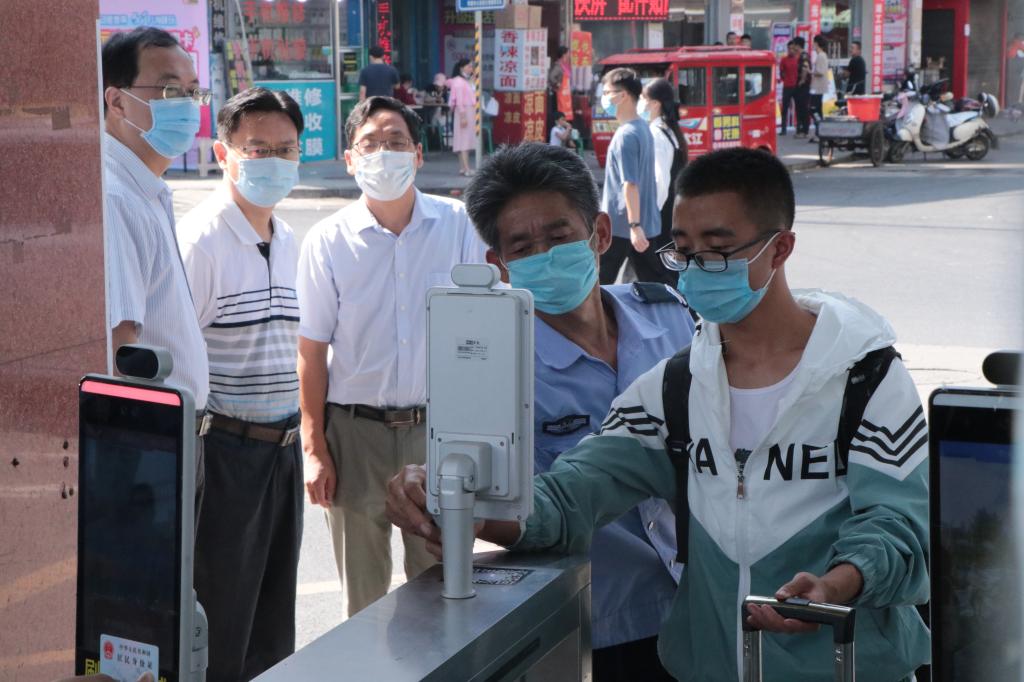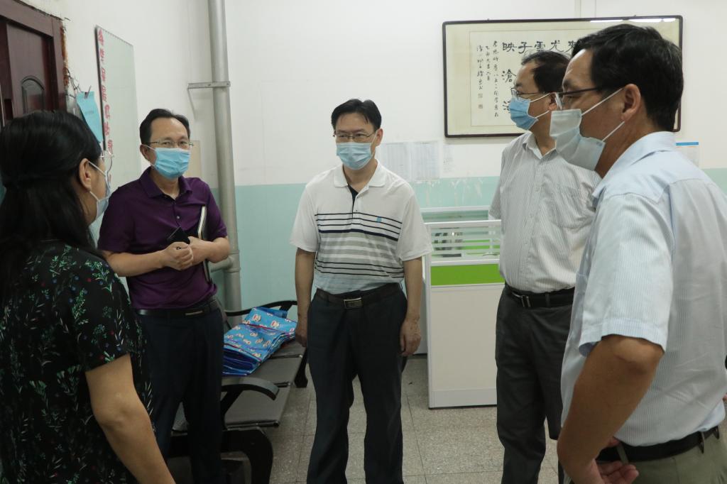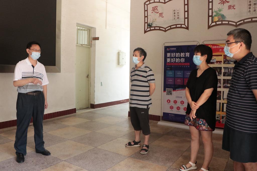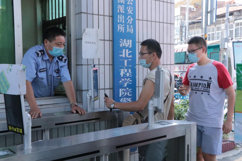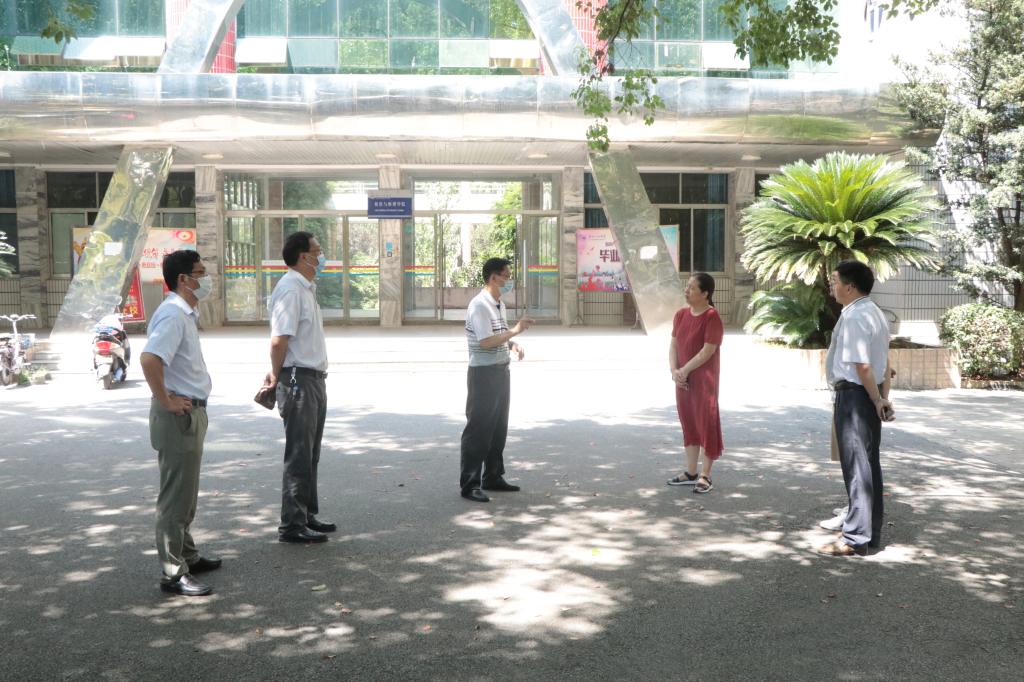 本网讯:8月29日,在校生返校的第一天。校党委书记彭瑜轻车简从,带领校办公室、学生工作部主要责任人,先后到学校南门、西门、图书馆和部分教学学院,实地检查秋季开学各项准备工作。