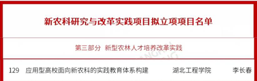 本网讯:日前,教育部高等教育司正式发布了《关于新农科研究与改革实践项目拟立项名单的公示》,我校生命科学技术学院李长春副教授主持的《应用型高校面向新农科的实践教育体系构建》项目获批立项。