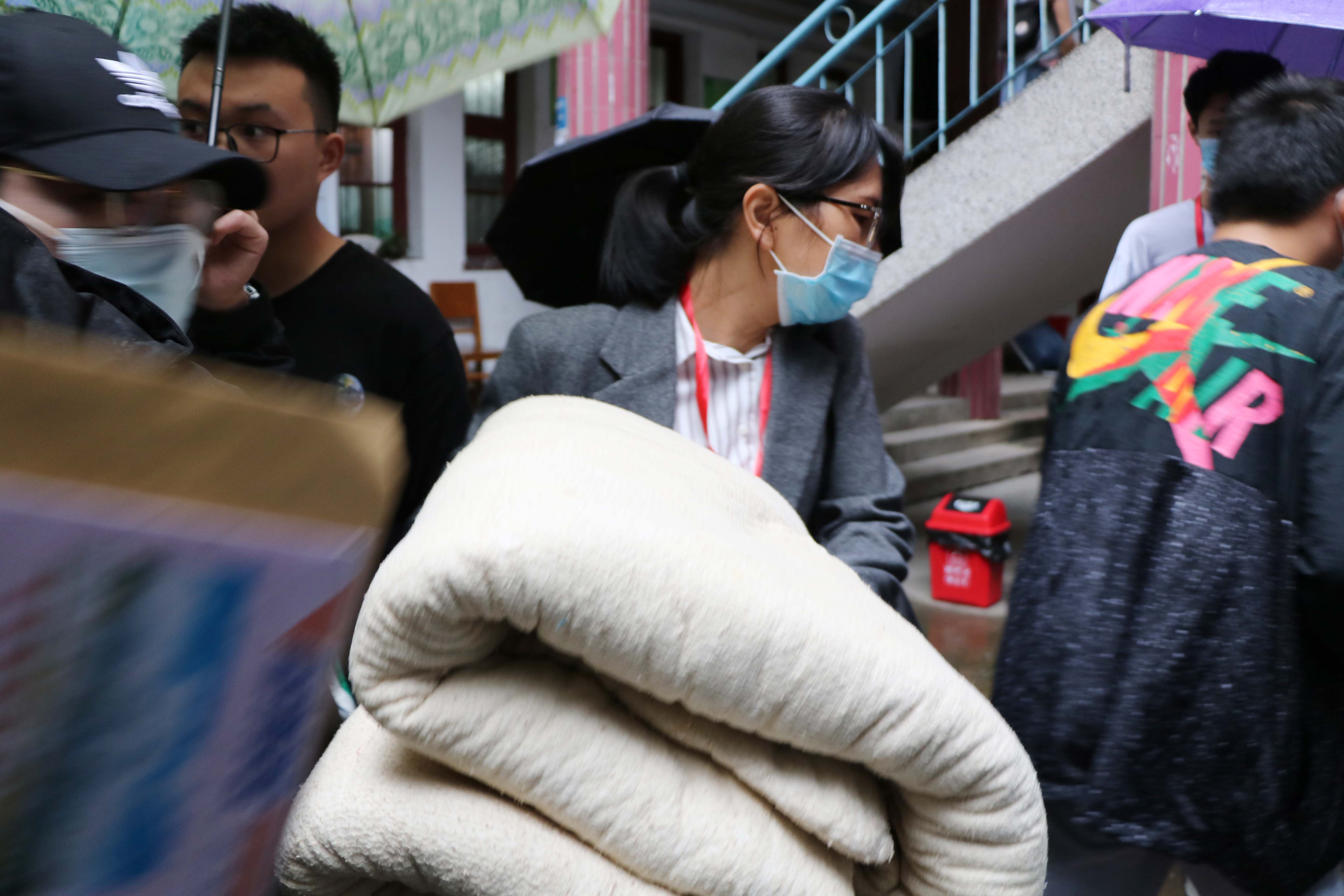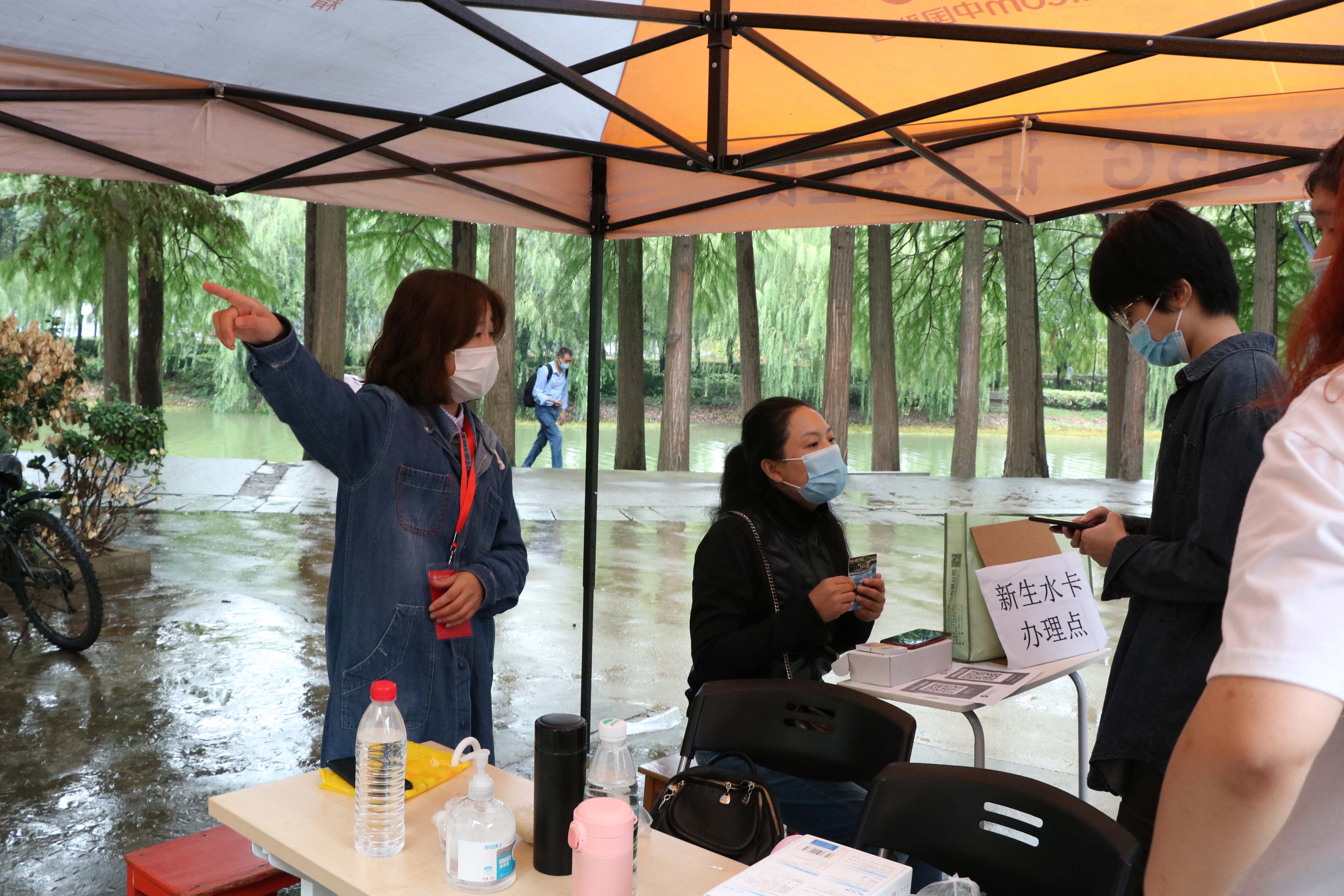 在东区学生宿舍志愿服务的尹洁老师说:“我值班的主要任务是落实学校防疫措施,以及协调志愿者搬运行李。新生行李比较多,早高峰的时候非常忙碌,但为了做好疫情防控和迎新工作,累也值得!”