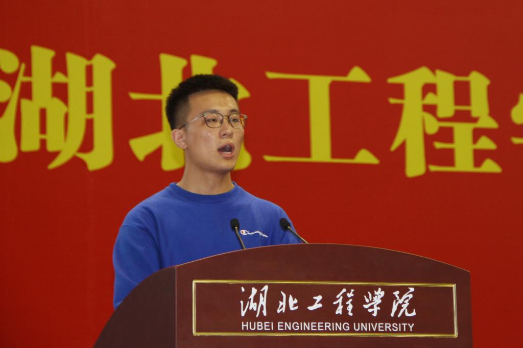 土木工程学院庞文哲同学代表2020级新生发言。他认为,要以高度的学习热情,扎实稳重的学习态度,乐观向上的生活心态,在学好专业知识的同时,多方位、全方面的提升自己,在未来更好地服务国家,服务人民。