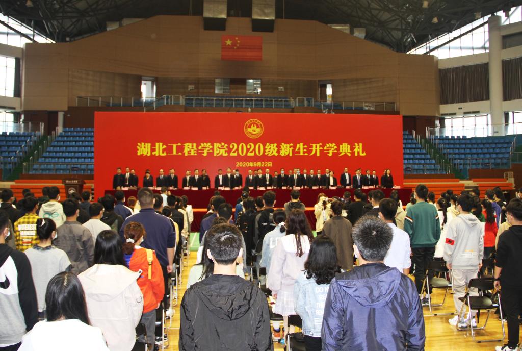 2020级新生开学典礼在庄严的国歌与激昂的校歌中开始。