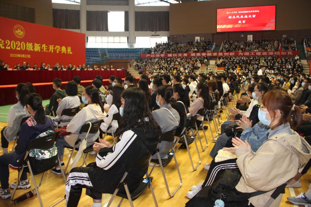 本网讯:9月22日上午,我校2020级新生开学典礼在学校湛林体育馆隆重举行。