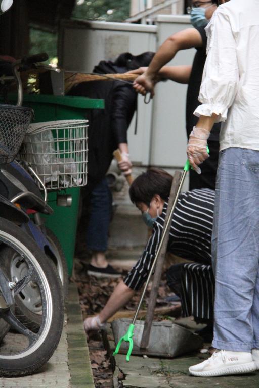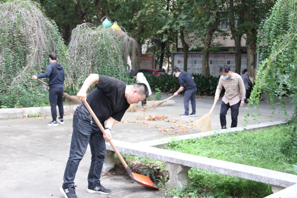 在校校领导、下沉党员干部、职能部门工作人员、各教学学院工作人员、教师和学生志愿者参加校园卫生大扫除活动。
