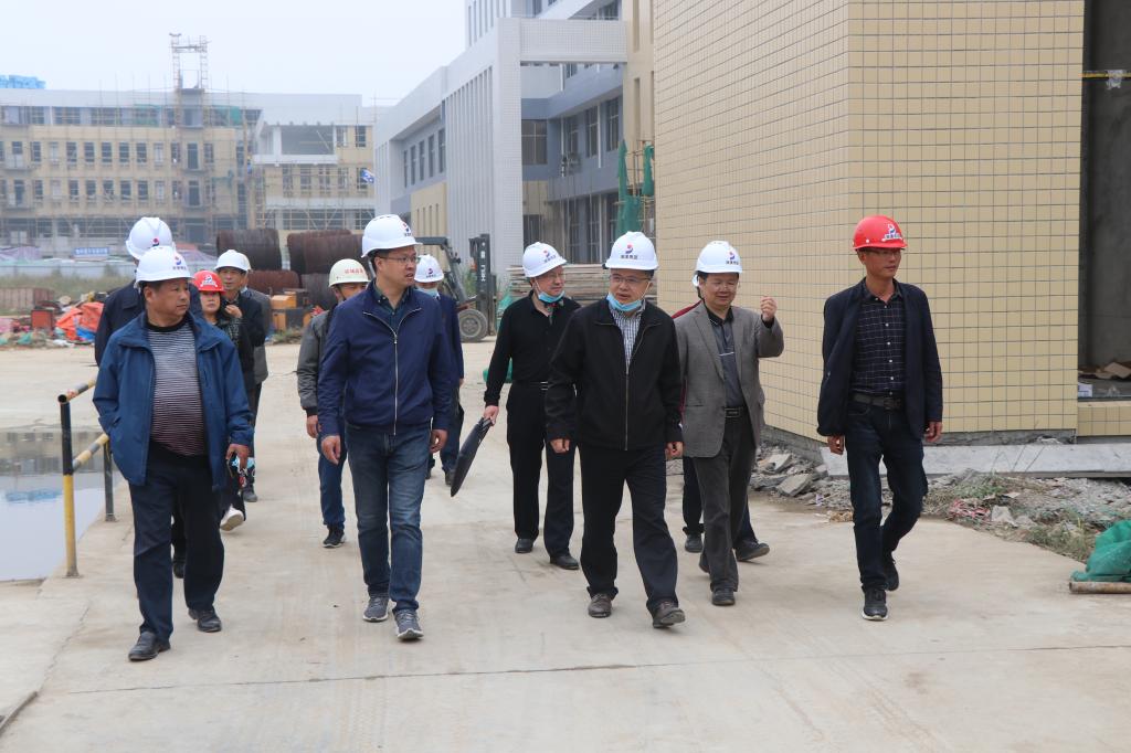 秋高气爽,实验实训中心建设工地上机器轰鸣,材料运输车辆来往穿梭,整个工地一片繁忙。目前,整体工程已进入内部装修阶段,各项施工正在紧张有序进行。潘慧明一行走进工地,步入大楼内部施工现场,详细询问工程建设进度,仔细察看工程质量,客观分析建设中遇到的问题,并对参与工程建设人员的辛苦劳动表示感谢。