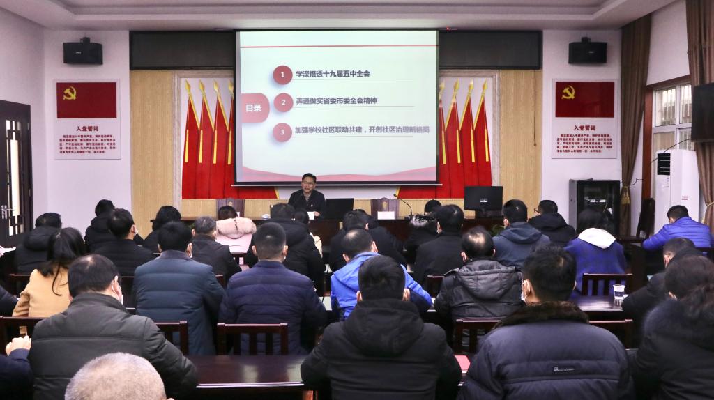 彭瑜重点宣讲了党的十九届五中全会、省委十一届八次全会和市委六届十一次全会精神,向大家介绍了学校“十四五”发展的总体设想,并与大家就加强和创新基层社会治理做了交流。