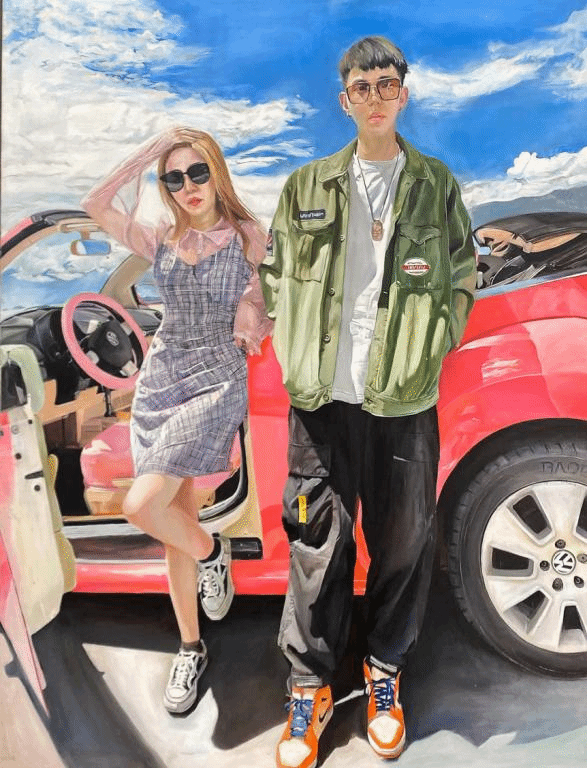 绘画类一等奖作品:《游客照》,作者:王丁宁,指导老师:熊胜利