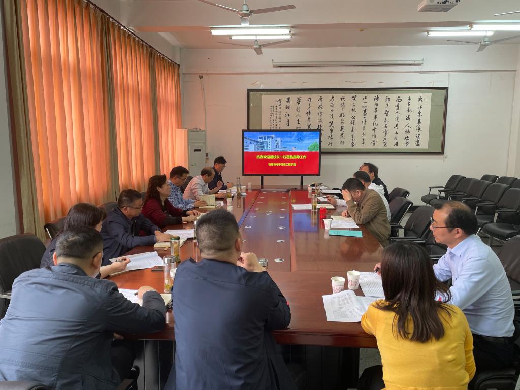 本网讯:5月7日,校长潘慧明、副校长鲁旭东、副校级干部徐玉琼一行到物理与电子信息工程学院(以下简称物电学院)就“十四五”规划编制工作进行专题调研,听取物电学院对学校事业发展的意见,指导物电学院编制”十四五“事业发展规划,发规处、教务处、学科办、科技处、人事处等职能部门负责人参加调研。