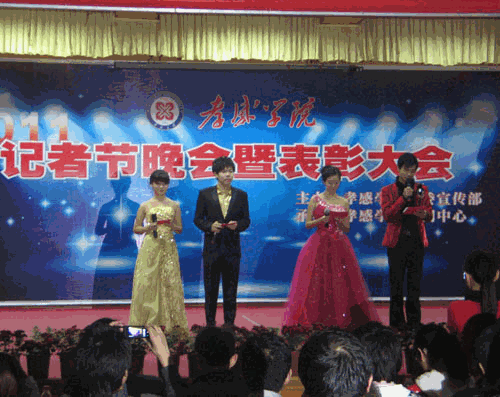 本网讯(学生记者 潘薇 江金秀)今年11月8日,是我国第十二个记者节。11月5日晚,由党委宣传部主办、新闻中心承办的2011年记者节晚会暨表彰大会在教一报告厅隆重举行。宣传部领导与记者欢庆节日。