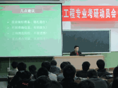 庄教授向学生们介绍了土木工程学科的分类以及研究生招考的相关政策,专业硕士和学位硕士的区别,并从师资和专业发展前景等方面对该院的研究生招考情况进行了重点介绍。他向同学们提出建议:加强复习、重点突破;收集报考学校的相关信息;合理选择报考学校;报考目标定位准确。庄教授的讲解为学生报考研究生指明了方向。