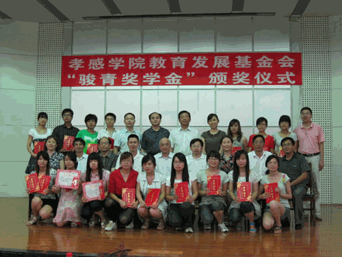本网讯(学生记者 陈晔 叶辰爽 朱传港)6月9日下午,孝感学院教育发展基金会“骏青奖学金”颁奖仪式在文学楼报告厅举行。党委副书记、校友会常务副会长、教育发展基金会理事长赵文正,副院长丁远坤,上海骏青钢铁有限责任公司总经理、孝感学院校友会常务理事、教育发展基金会副理事长程俊先生,校友会秘书长、教育发展基金会副理事长段百花,教务处处长鲁旭东,校学生资助管理中心主任、学工部副部长李道友,经济与管理学院院长彭必源、党总支书记王锋,校友会副秘书长、教育发展基金会秘书长张红及经济与管理学院的相关负责人出席了仪式。颁奖仪式由段百花主持。