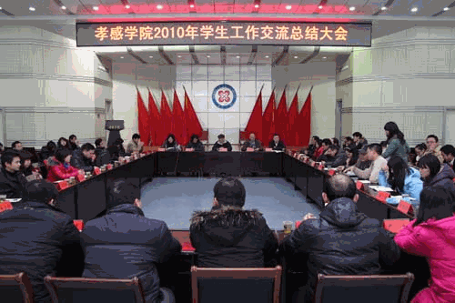 本网讯(特约记者 洪鹏)1月18日,孝感学院2010年学生工作交流总结大会在文学楼报告厅召开。党委副书记赵文正,党委委员、学工部部长黄颂,团委书记郑俊,学工部副部长张丽芳出席会议,各二级学院党总支副书记、团总支书记、辅导员,学工部、团委、资助中心全体工作人员参加会议。会议由郑俊主持。