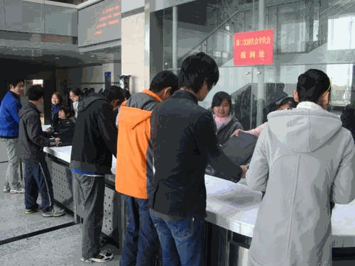 本网讯(学生记者 徐皞亮)12月9日上午8点,参加共青团孝感学院第二次代表大会、孝感学院第二次学生代表大会的教职工及学生代表在图书馆二楼大厅报到。代表们在工作人员的指导下办理会议登记手续并领取会议材料,整个过程秩序井然。