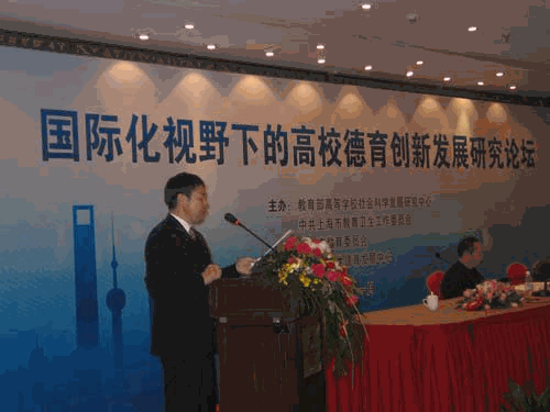本网讯 (特约记者 胡泽勇)11月25—26日,经教育部批准,由教育部高等学校社会科学发展研究中心和中共上海市教育卫生工作委员会、上海市教育委员会联合主办的“国际化视野下的高校德育创新发展”研究论坛在上海举行。本次论坛旨在积极应对经济全球化、文化多元化给我国高校德育带来的发展机遇和严峻挑战,引领高校德育研究和工作队伍站在全球化的高度分析新形势、研究新问题、探索新思路,促进理论与实践有效结合,推动我国高校德育进一步创新发展。教育部社科中心主任冯刚及近200所高校和部分省市区教育厅领导和专家代表与会。