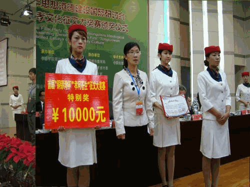 本网讯:10月16日上午,紧接着2010’中国(孝感)中华孝文化与青少年思想道德建设国际研讨会开幕式后,首届“铜锣湾杯”孝文化征文大奖赛颁奖仪式在我校图书馆学术报告厅隆重举行。