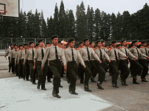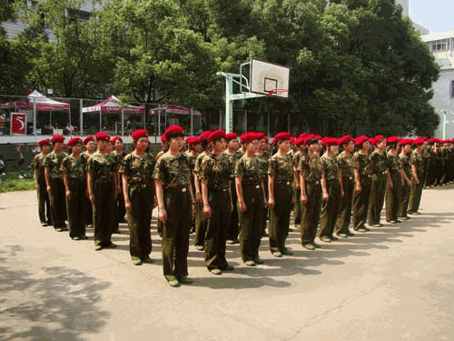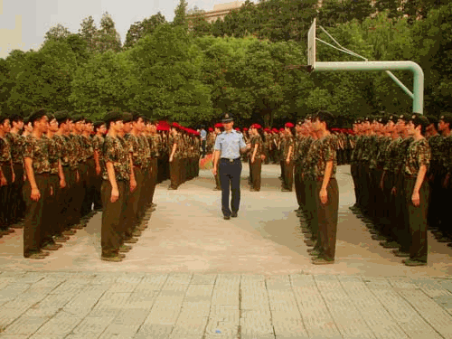 训练场上,同学们个个精神抖擞,认真地完成队列操练中的种种姿势。扑面而来的是他们蓬勃的朝气,耳边洋溢的是他们嘹亮的声音。
