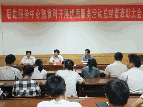 陈红桥作工作总结报告。他指出,此次优质服务活动动员充分、指导思想明确、方案科学具体、措施得力,并注重珍惜民力、节约开支、切合实际、注重长效,收到了很好的效果。他说,优质服务工作绝非一蹴而就,需要常抓不懈地坚持下去。他希望广大工作人员积极听取并采纳师生的合理化建议,总结经验,找出不足,不断提高服务质量,优化菜品结构,让食堂工作再上一个台阶。