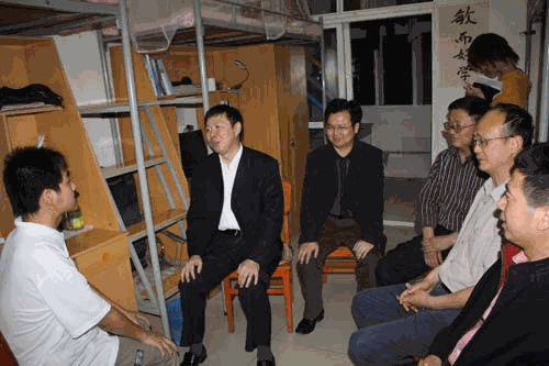 本网讯(学生记者 马敏 严福灯 朱佳)5月23日晚,孝感学院党委书记肖波、副院长覃彩芹、学工部部长黄颂,孝感学院新技术学院院长张忠海、党委书记王俊、学生工作处处长肖云霞、信息工程系相关领导老师等一同前往同大学生公寓8栋看望慰问新技术学院信息工程系09级电子信息工程专业的汪品超同学。