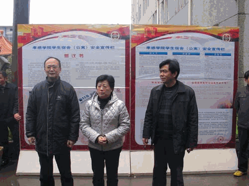 本网讯(学生记者何圭雄严小丽汤雅梦)4月14日上午,在学校东区女生宿舍前,300余名同学争相浏览孝感学院宿舍(公寓)安全宣传栏,观看学校后勤服务中心展出的各种不安全电器。党委副书记李四芬、院长助理熊平凡一行人冒着风雨来到东区女生宿舍前,为在场学生讲解了安全用电知识。校学工部部长黄颂、后勤服务中心主任祝玉芳及宿管科全体工作人员参加了活动。