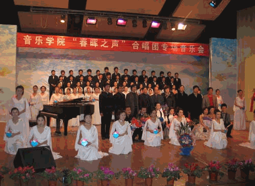 链接:音乐学院合唱团成立于1999年9月,名为“春晖之声”合唱团,现有成员85人,张金同学担任团长,舒莹同学担任指挥,李云山同学担任钢琴伴奏。合唱团从创建到日常活动均得到音乐学院领导和老师的大力支持,余瑞老师担任合唱团的总指导,王茁老师担任声乐指导,凌崎老师担任钢琴指导,合唱团在飞速壮大的过程中取得了优异的成绩:在庆祝新中国成立60周年合唱比赛中荣获“最佳表演奖”、湖北省第三届大学生艺术节合唱类甲组“一等奖”、湖北省第三届“青春歌会”合唱比赛“一等奖”,并多次受邀赴孝感礼堂进行会演,受到社会各界的好评。