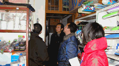 在学苑超市,胡社华等对货架和仓库进行仔细检查,重点抽查了货架上的饮用水、火腿肠、牛奶等,叮嘱超市负责人严禁出售“三无”产品(无厂家,无注册商标,无生产日期),确保食品的安全。查看仓库时,胡社华反复强调眼下正值冬季,货物干燥,是火灾多发季节,防火与用电安全丝毫不能马虎,要时刻做到夜晚无人要断电。