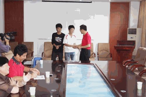 郭远鹏说,值此建国60周年之际,受综治委委托,我们前来慰问看望“孝感市见义勇为先进集体”的张新虎、熊伟同学,祝两位同学节日愉快,希望两位同学今后继续弘扬中华民族见义勇为的光荣传统,使其发扬光大。随后,郭远鹏给两位同学发放了慰问金。