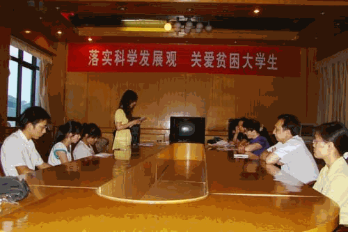 欧阳莎莉表示本次“关爱贫困大学生”活动是学校深入学习实践科学发展观的另一举措,并提出希望在座学生代表汇报学习生活情况。来自新技术学院的06级徐青同学回顾了自己三年的大学生活。她认真刻苦学习,曾获得国家励志奖学金、学校二等奖学金等奖项。政治与法律学院的08级刘玉梅同学总结了自己一年的学习心得,她说相信学习可以改变命运,要抓住一切机会锻炼自己。各学生代表均表示真诚感谢工会领导、老师给予的帮助,要努力学习以回报工会、回报学校、回报社会。