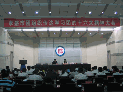 本网讯(学生记者 刘朋 陈芬芬 报道)6月18日下午,孝感市团组织传达学习团的十六大精神会议在我校文学楼学术报告厅隆重召开。团的十六大代表、孝感团市委书记沈磊,副书记胡斌莅临我校,为全市各级共青团干部及我校团员代表作传达团的十六大精神的报告。