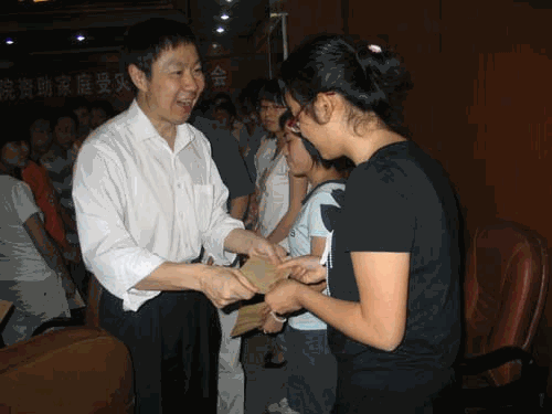 黄部长就学校抗震救灾工作、我校灾区学生的基本情况和学校对灾区学生做的工作作了介绍。党委书记肖波代表学校向灾区学生代表一一发放慰问金,并与他们亲切握手,表达慰问之情并给予鼓励,在场的学生代表们深受感动。