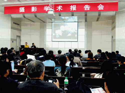 本网讯(学生记者 卢俊俊 肖璐)10月22日,中国著名摄影家、中国艺术摄影学会会长刘雷,中国新闻摄影家学会副会长、《中国青年报》图片总监贺延光,中国摄影家协会副主席、《中国日报》摄影部主任王文澜莅临我校,在我校文学楼学术报告厅作了两场摄影学术报告会。