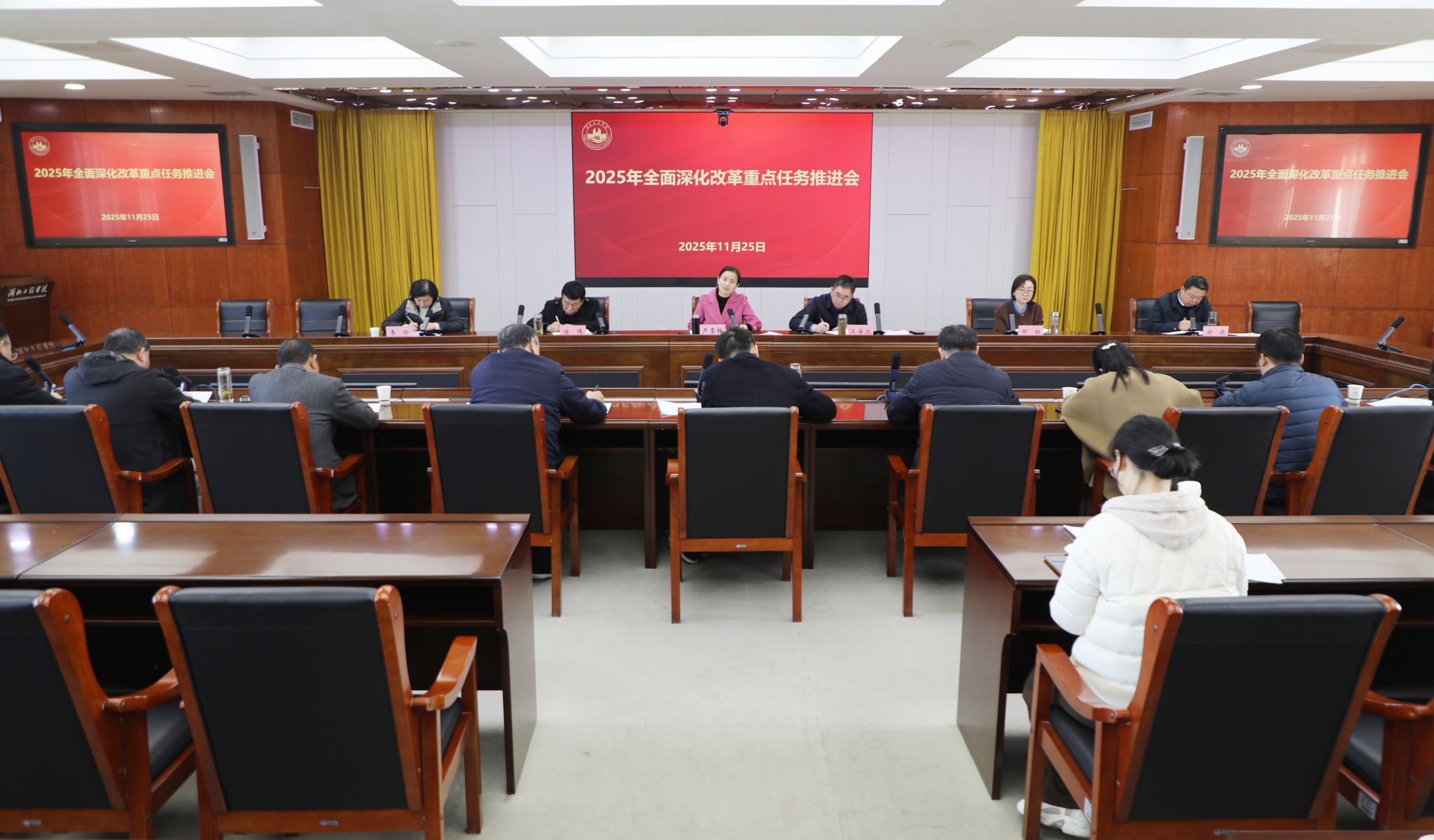 本网讯:11月25日,学校召开全面深化改革重点任务推进会,研究深化改革专项工作推进和任务落实工作。全体在校校领导、深化改革重点任务牵头及参与单位负责人参加会议。学校党委书记卢雪梅出席会议并讲话,校长汪海波主持会议。
