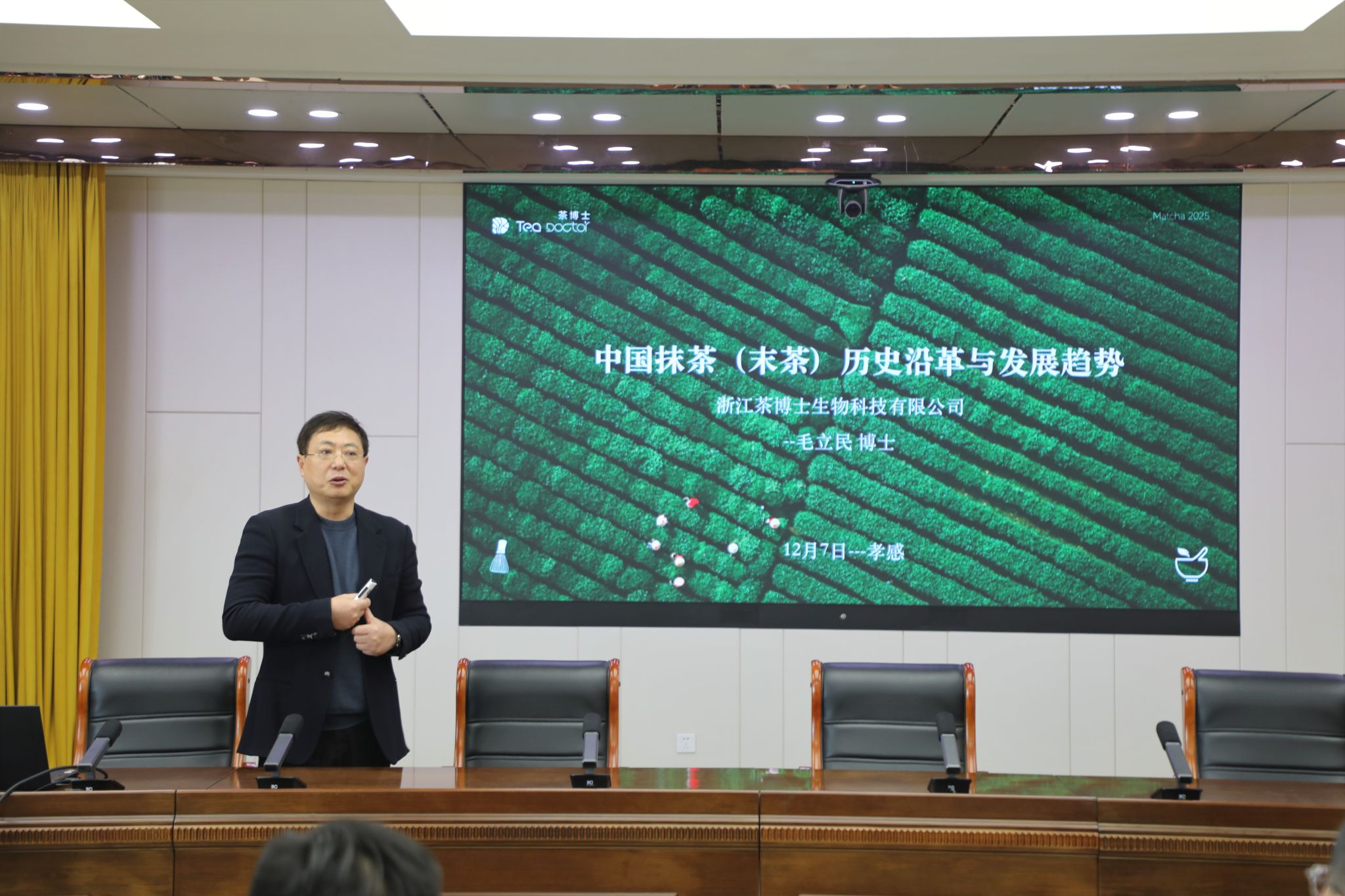 随后,王岳飞教授和浙江茶博士生物科技有限公司董事长毛立民分别作了《科技创新与中国孝感茶产业发展》和《中国抹茶历史沿革与发展趋势》的专题报告。