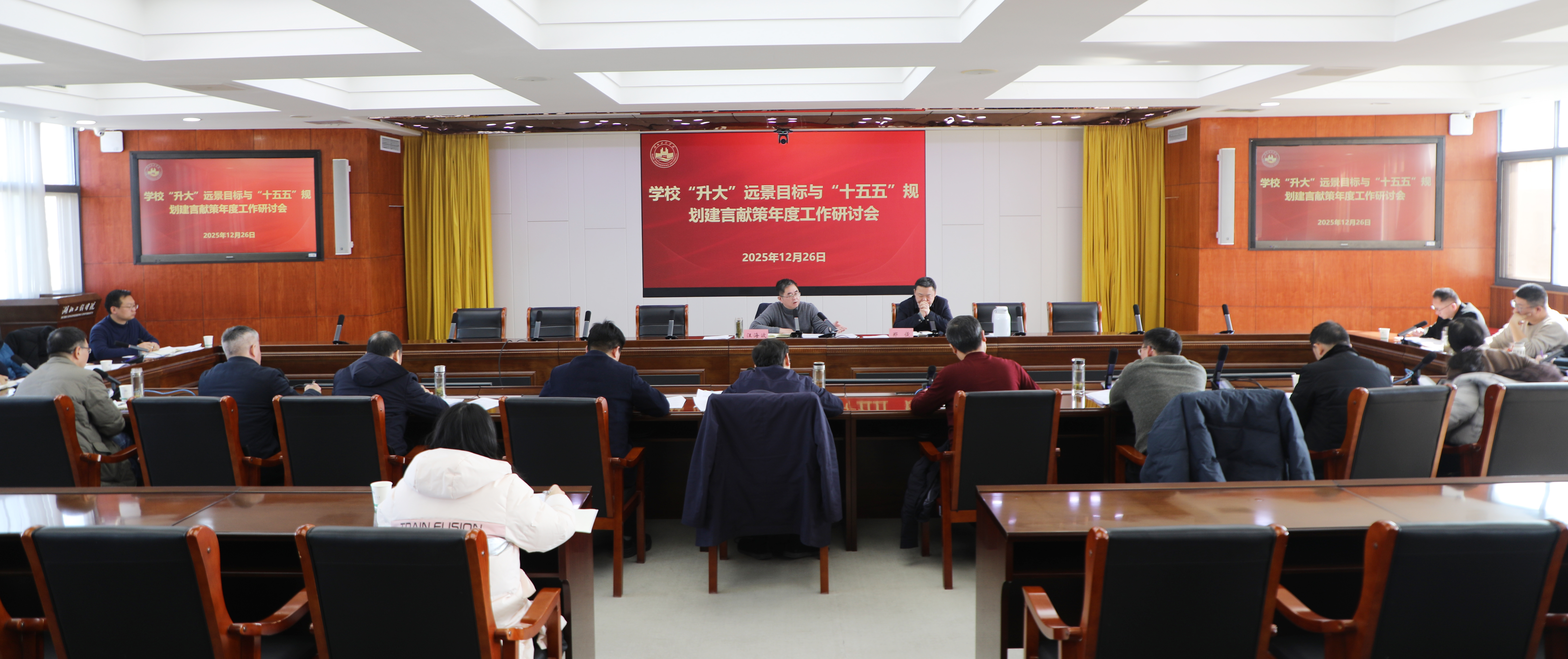 本网讯:12月26日,为科学谋划学校“升大”远景目标、制定“十五五”事业发展规划,系统总结2025年工作成效,统筹部署2026年重点工作,学校在明德楼六楼会议室召开了“升大”远景目标与“十五五”规划建言献策暨年度工作研讨会。校长汪海波、副校长郑俊出席,各教学学院院长、科技处、教务处主要负责人以及发展规划与学科建设处全体人员参会。会议由郑俊主持。