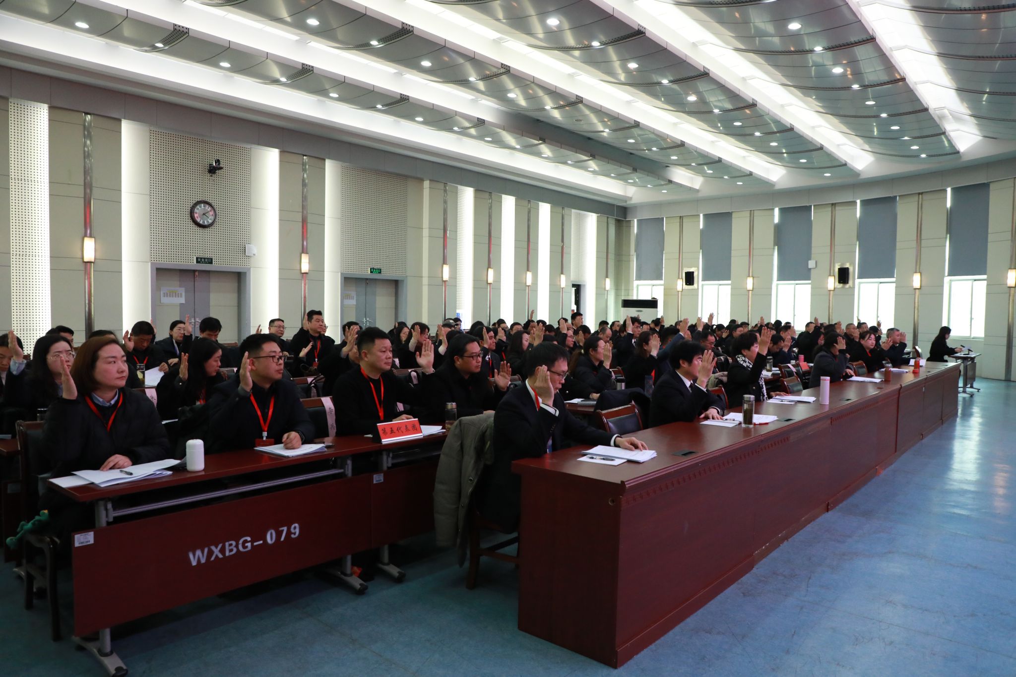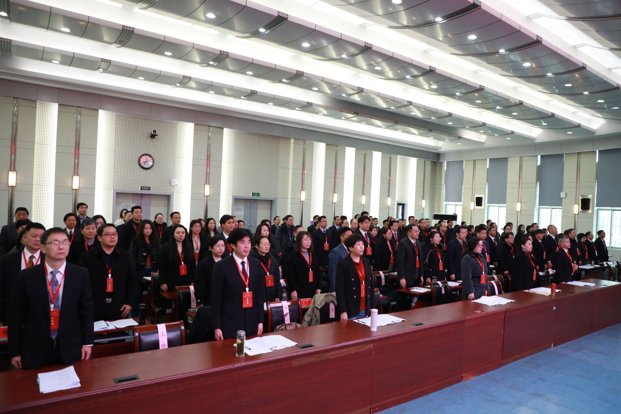 完成各项议程后,会议在雄壮的国歌声中闭幕。