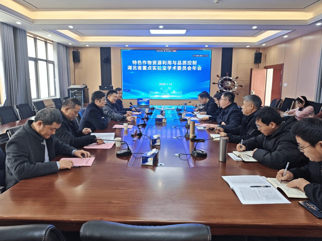 本网讯:2026年1月14日,特色作物资源利用与品质控制湖北省重点实验室2025年度学术委员会会议在我校顺利召开。校党委副书记、校长汪海波出席会议并致辞。来自中国农业科学院、北京大学、华中农业大学、湖北大学、湖北工业大学、湖北省农业科学院等单位的学术委员会委员,以及学校科学技术处负责人、实验室教师代表共同参加了本次会议。