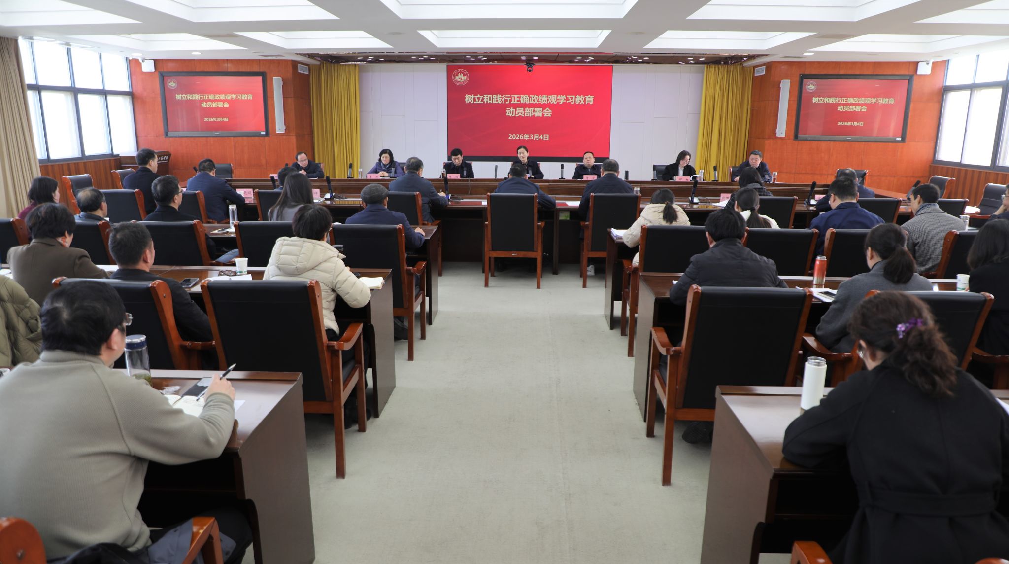 本网讯:3月4日上午,学校召开树立和践行正确政绩观学习教育动员部署会。党委书记卢雪梅主持会议并讲话。她强调,要深入学习贯彻习近平总书记关于树立和践行正确政绩观的重要论述,认真落实党中央决策部署和省委工作要求,高标准严要求抓好各项任务,确保学习教育取得实效。