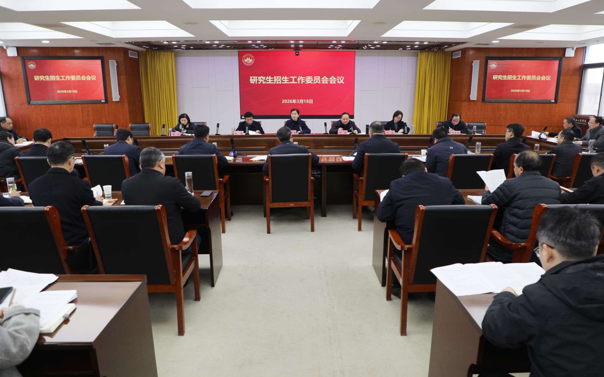 本网讯:3月18日,学校召开2026年硕士研究生招生工作委员会会议。全体在校校领导出席会议,招生委员会全体成员参加会议。会议由招生委员会主任、党委书记卢雪梅主持。