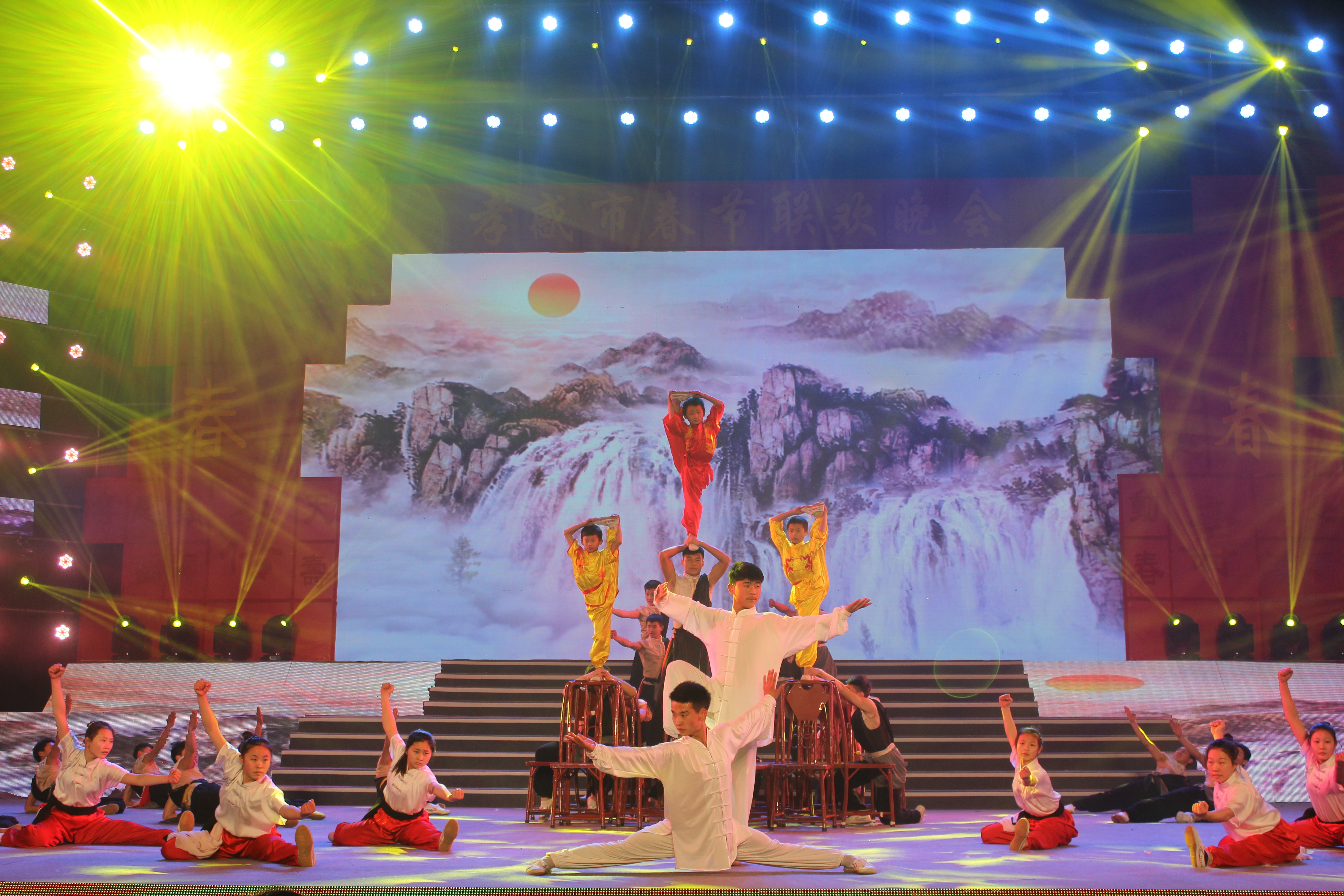 晚会在歌舞《春天的盛宴》中拉开序幕。欢快的音乐旋律、激情奔放的舞蹈,把观众情绪拉入到新春喜庆的氛围之中。少儿舞蹈《年夜的梦想》中,孩子们用活泼可爱的舞蹈表达对新年美好的向往;相声《望夫成龙》诙谐幽默的表演赢得现场观众阵阵欢笑;歌舞《孝感美》、舞蹈《槐荫情》用群众喜闻乐见的形式表达对家乡的热爱和自豪;武术表演《武林雄风》演员们功夫精湛,扣人心弦;表演唱《我的伞兵战斗车》激荡起中国梦强军梦的昂扬旋律;音乐情景剧《守护家园》艺术地再现全市广大干部群众和部队官兵众志成城、鏖战洪魔的壮美画卷。