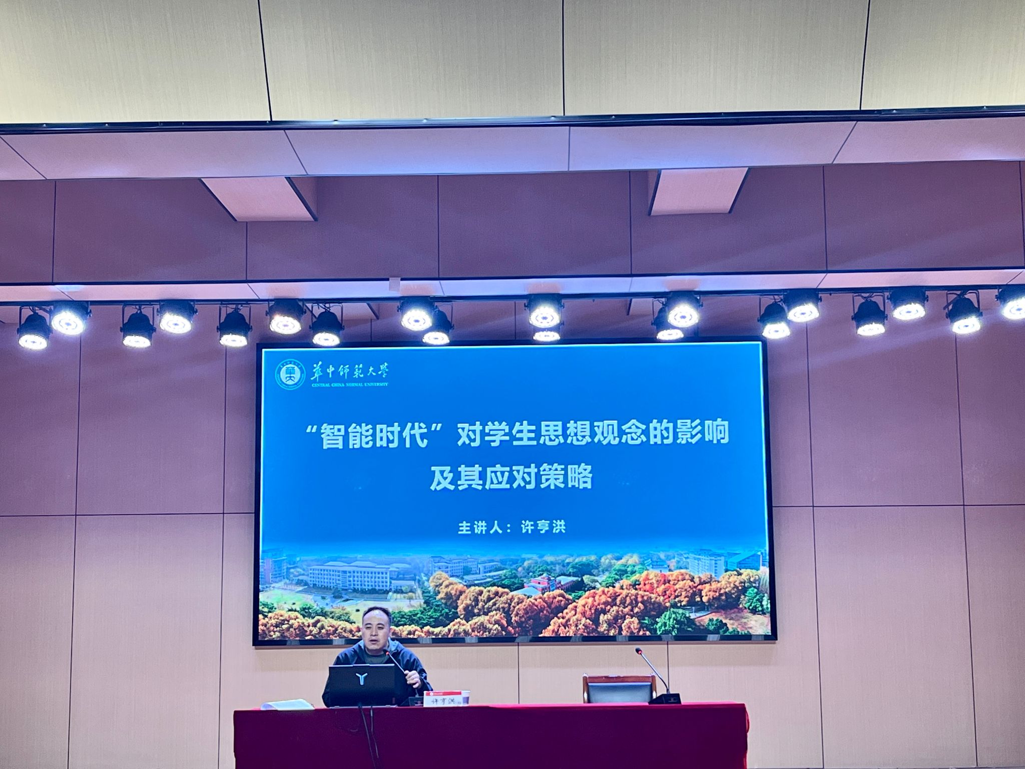 华中师范大学党委学生工作部思政处辅导员发展办主任许亨洪教授结合自身工作实际,以《智能时代对学生思想观念的影响及其应对策略》为题作专题分享,深入剖析了智能时代背景下学生思想观念呈现的新特点、新趋势,针对这一现状,他强调高校辅导员需以“数字素养”为基础、“数字思政育人能力”为核心,通过“信息服务精准化、数字思政具象化、智慧思政场景化”的实践路径,将思想引导转化为可操作、可感知的育人行动,切实筑牢智能时代立德树人的思想根基。