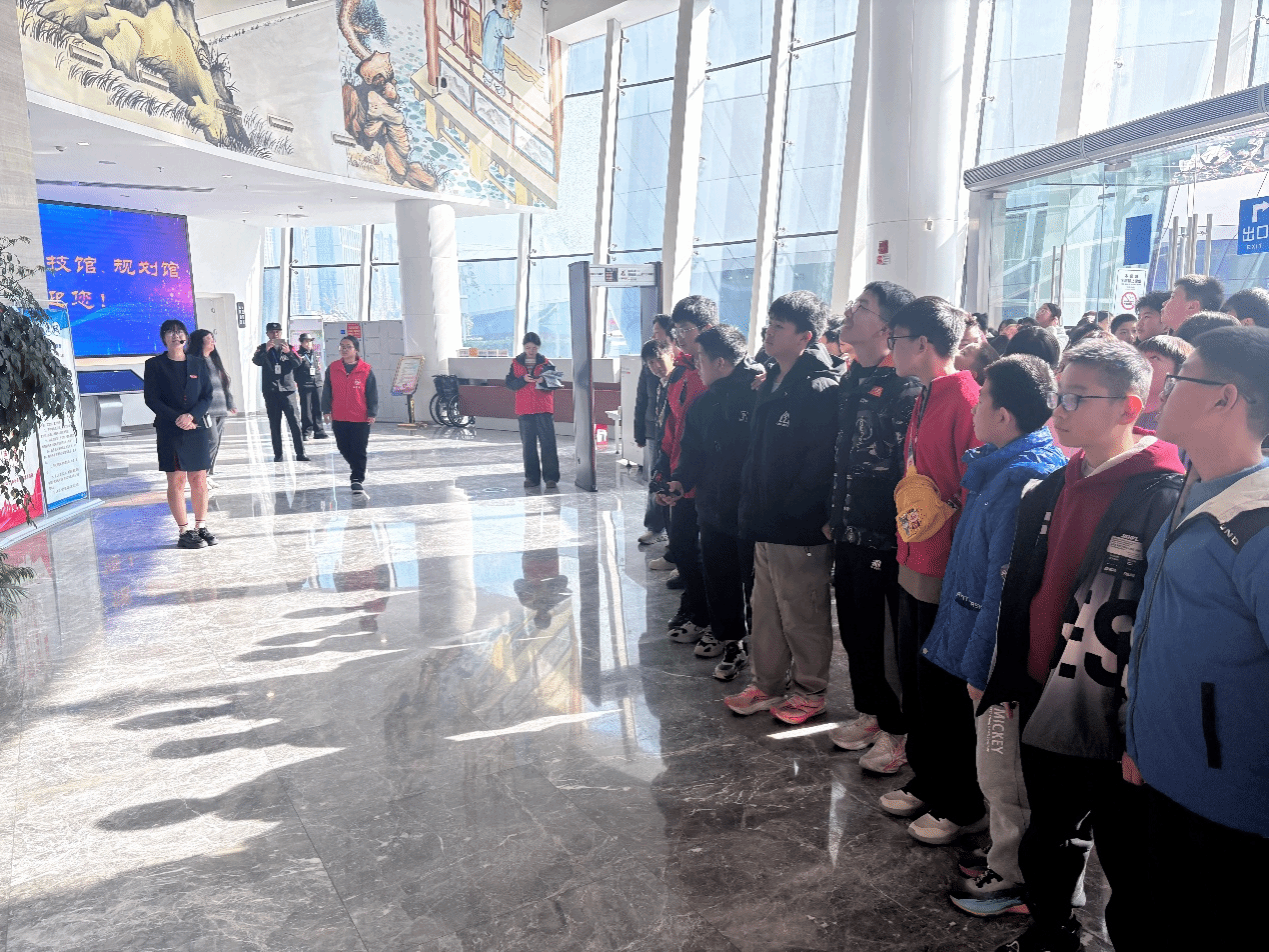 在科技馆志愿者的引导和讲解下,同学们对各类展品表现出浓厚兴趣。在“机械韵律联动装置”前,大家亲手转动转盘,观察数百个精密零件有序运转,将小球精准传递至下一环节,感受机械的力量与韵律之美,现场不时传来阵阵惊叹。在“科学乐园”展区,同学们积极参与“自己拉自己”“抓棒测试”等互动项目,在实践中直观理解力学原理与反应速度的科学内涵。“寻梦太空”展区陈列的玉兔号月球车模型、太空舱仿真装置等,则让大家沉浸式体验中国航天的辉煌成就,激发了对浩瀚宇宙的无限向往。这场科普之旅,如同一场奇妙的科技派对,将知识转化为看得见、摸得着的快乐,悄然在孩子们心中播下探索科学的种子。