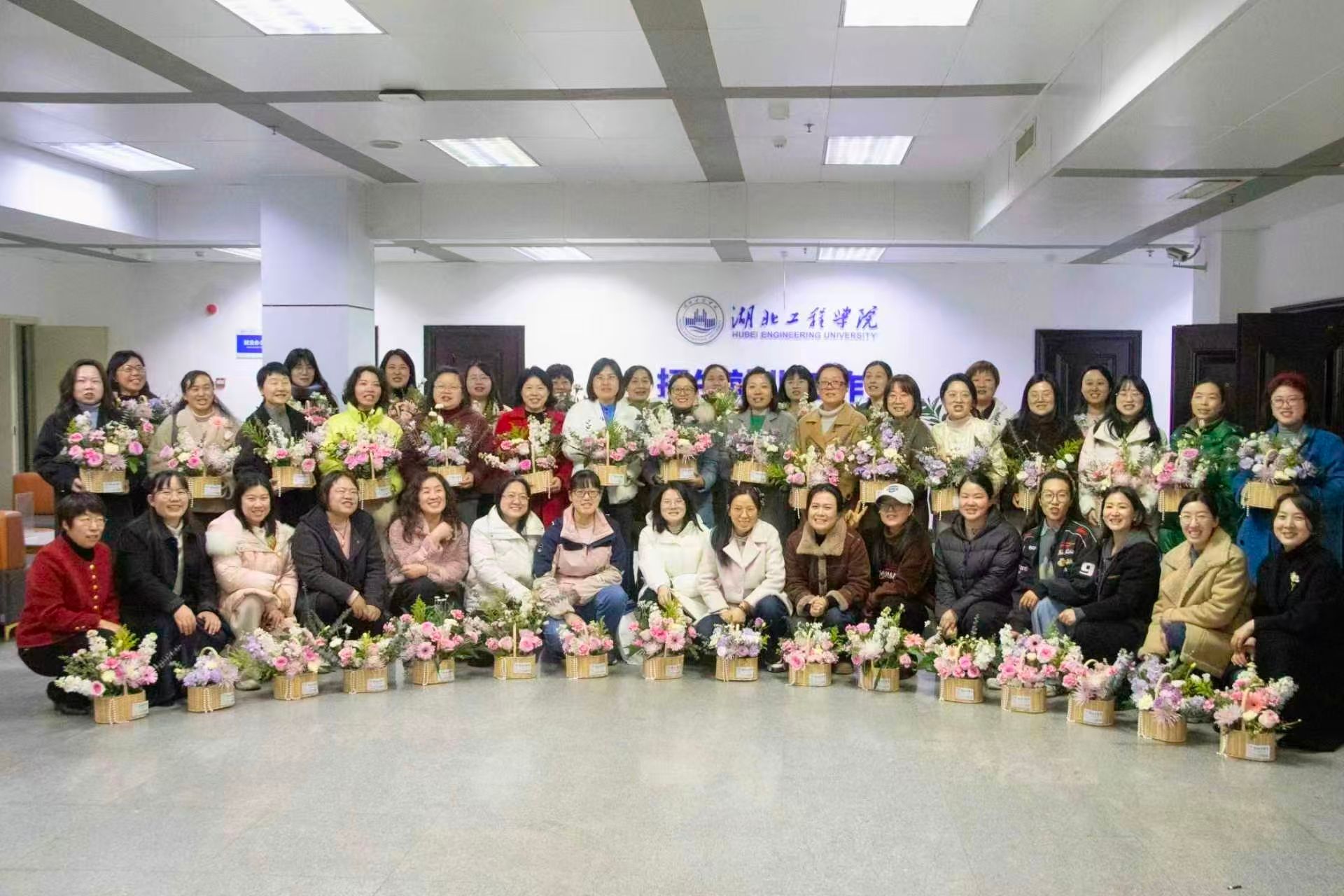 本网讯:3月6日下午,校工会在招生与就业工作处一楼星火教育招聘厅举办庆“三八”国际劳动妇女节女教职工插花活动,庆祝第116个“三八”国际劳动妇女节。各分工会的50余名女教职工代表欢聚一堂、共庆佳节。学校党委副书记、工会主席陈伟出席活动并致辞。