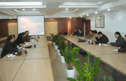 该校学工部部长王林清就学校基本情况,学生工作体系的构建思路,学生工作的基本架构、运行模式、基本经验与主要特色等方面作了介绍。李四芬向中国地质大学的领导和老师们介绍了我校的学生工作模式及特色。黄颂、胡宗明、彭海涛等还就辅导员选聘、职称评定等问题与对方交换了看法。